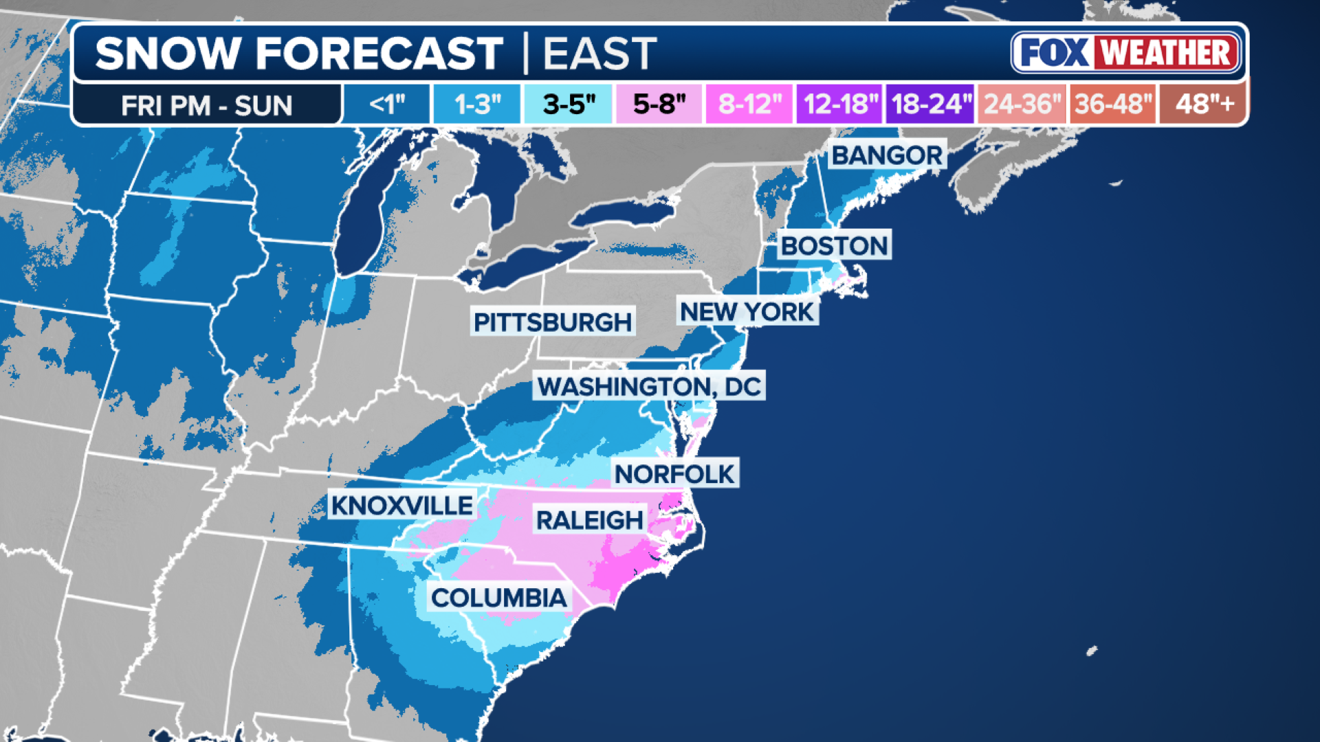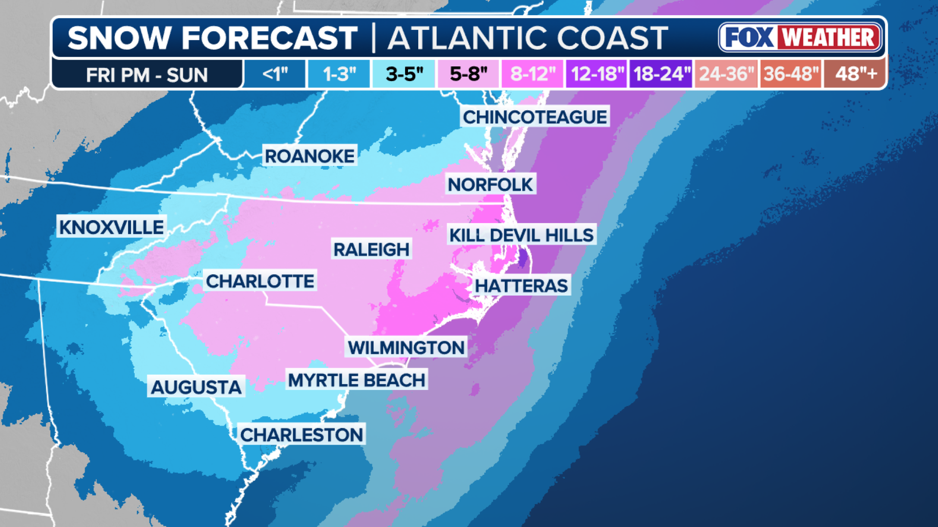 There is growing confidence in major snow of up to a foot slamming the Carolinas and Virginia. The scenarios range from a crippling I-95 blizzard to a glancing blow.