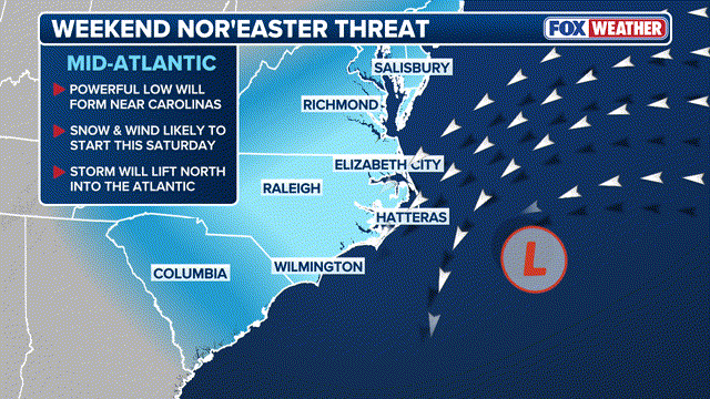 FOX Weather Meteorologist Jane Minar analyzes a brewing nor'easter forecast to slam the East Coast with winter weather from the Carolinas through New England this weekend.