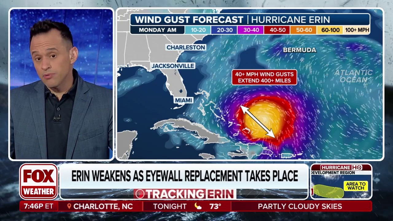 FOX Weather Meteorologist Ari Sarsalari shares the latest updates on Hurricane Erin, as the Category 3 storm continues to move.
