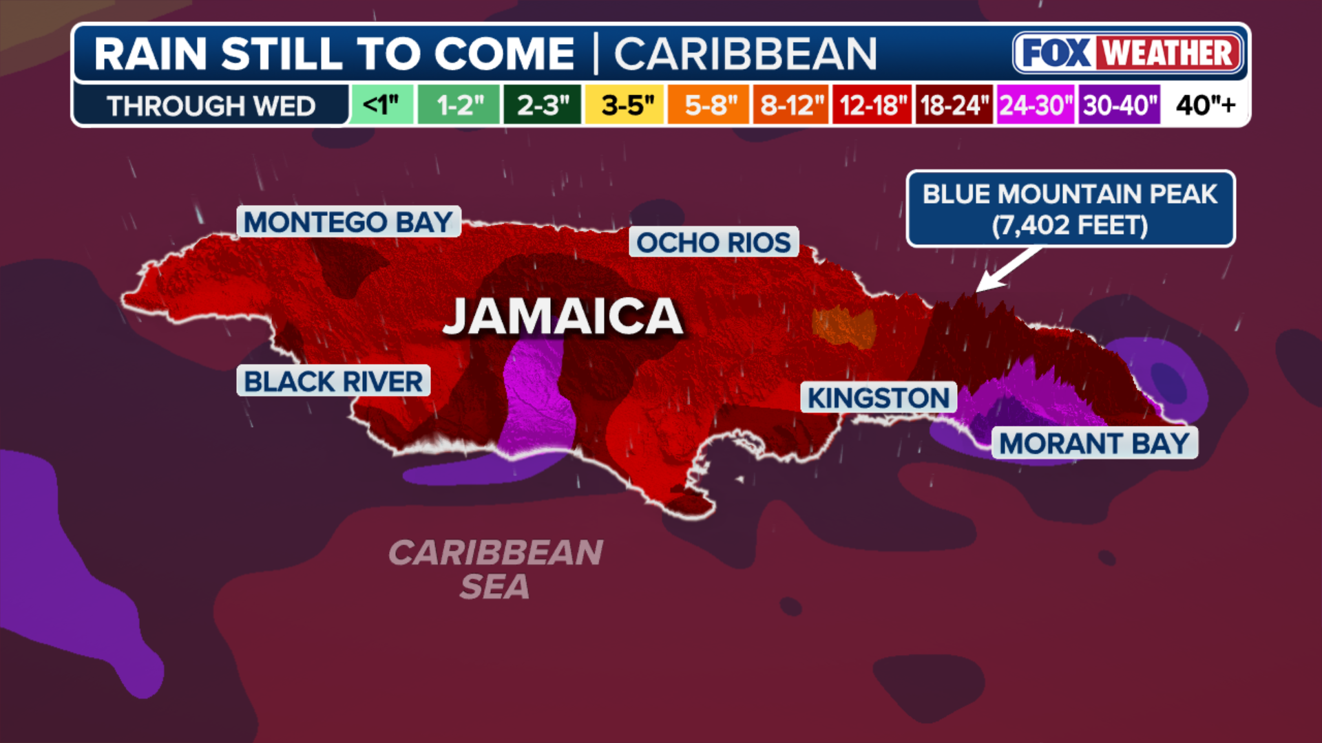 Forecasts are warning of catastrophic flooding as the storm batters the island with heavy rain for days. The NHC predicts widespread rainfall totals of 15-25 inches across Jamaica just through landfall Tuesday, with 35 inches possible in parts of Haiti.