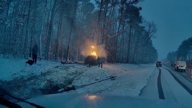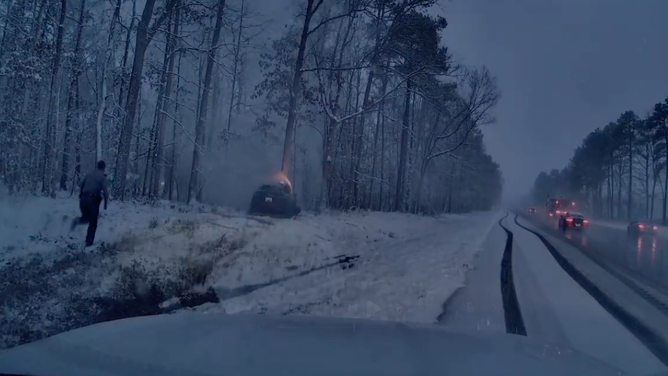 HEROIC RESCUE: Virginia State trooper jumps into action to pull driver from burning vehicle in snowy conditions