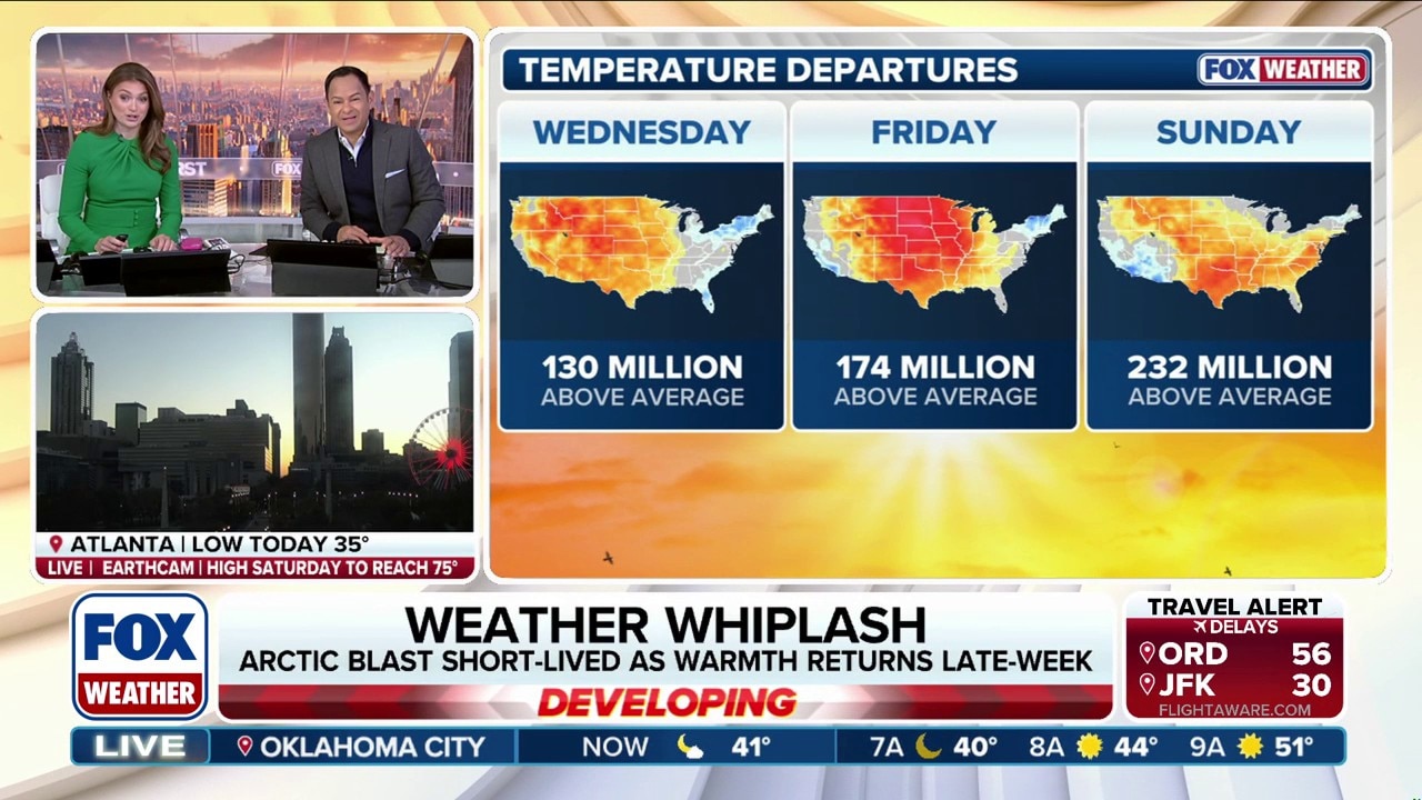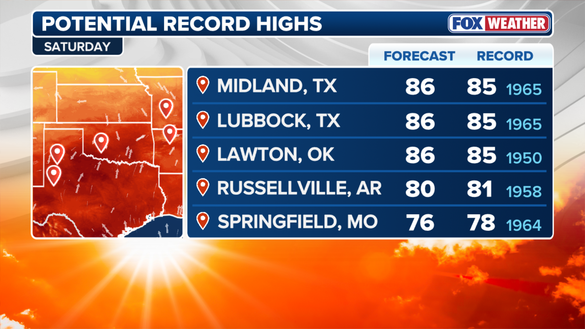 According to the FOX Forecast Center, Oklahoma City and Tulsa, Oklahoma could reach 80 degrees by Friday, and parts of the Texas Panhandle are expected to approach 90 degrees.
