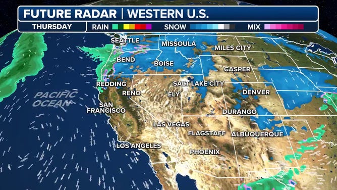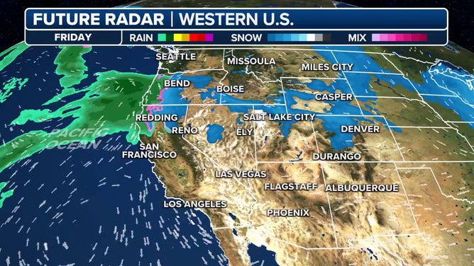 "The floodgates, or should it be snowgates, have opened across the West with an incredibly active period for the next 7 days," said the FOX Forecast Center. "Multiple storms will swing through the region, dropping feet of snow, leading to dangerous road conditions throughout the region."